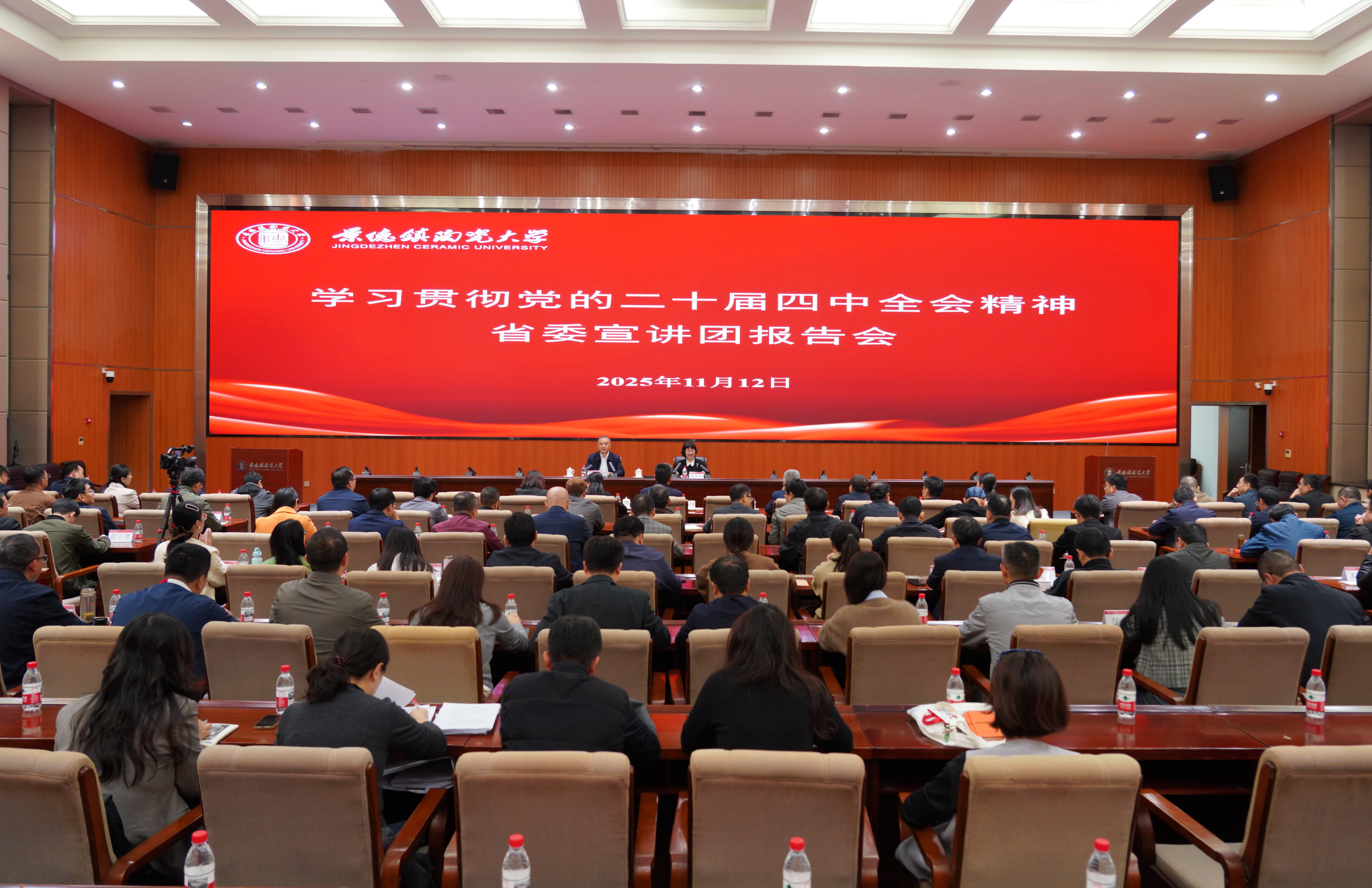 按照省委统一安排,11月12日,学习贯彻党的二十届四中全会精神省委宣讲团报告会在景德镇陶瓷大学举行。省委宣讲团成员、省委统战部分管日常工作的副部长高鹰群作宣讲报告。校党委书记蒲守智主持报告会。在家校党委班子成员王海波、冯浩、陈云霞、黄勇、胡银娇、王金海、陈丽萍出席报告会。学校中层干部、思政课教师、辅导员、民主党派、党外人士以及学生宣讲团代表到场聆听。
